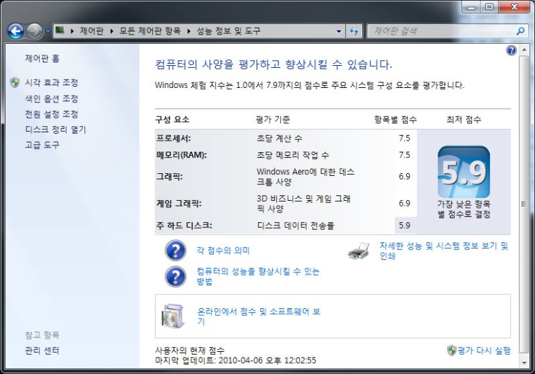 이 같은 과정을 거치면 비로소 바라마지 않던 내 PC의 성능 확인이 이뤄지는 것이다.