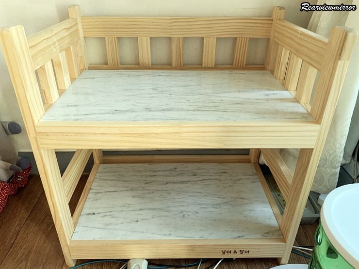 주문 후 정확히 10일만에 받은 침대의 사이즈를 측정해보니 내부 가로가 50cm임이 다시 한번 확인되어 맘놓고 대리석매트를 주문하게 되었다. 제조사와 얘기하여 원제품 구성인 원목 프레임을 제외한 대리석만 구입하기로 하여 비용을 줄였다.